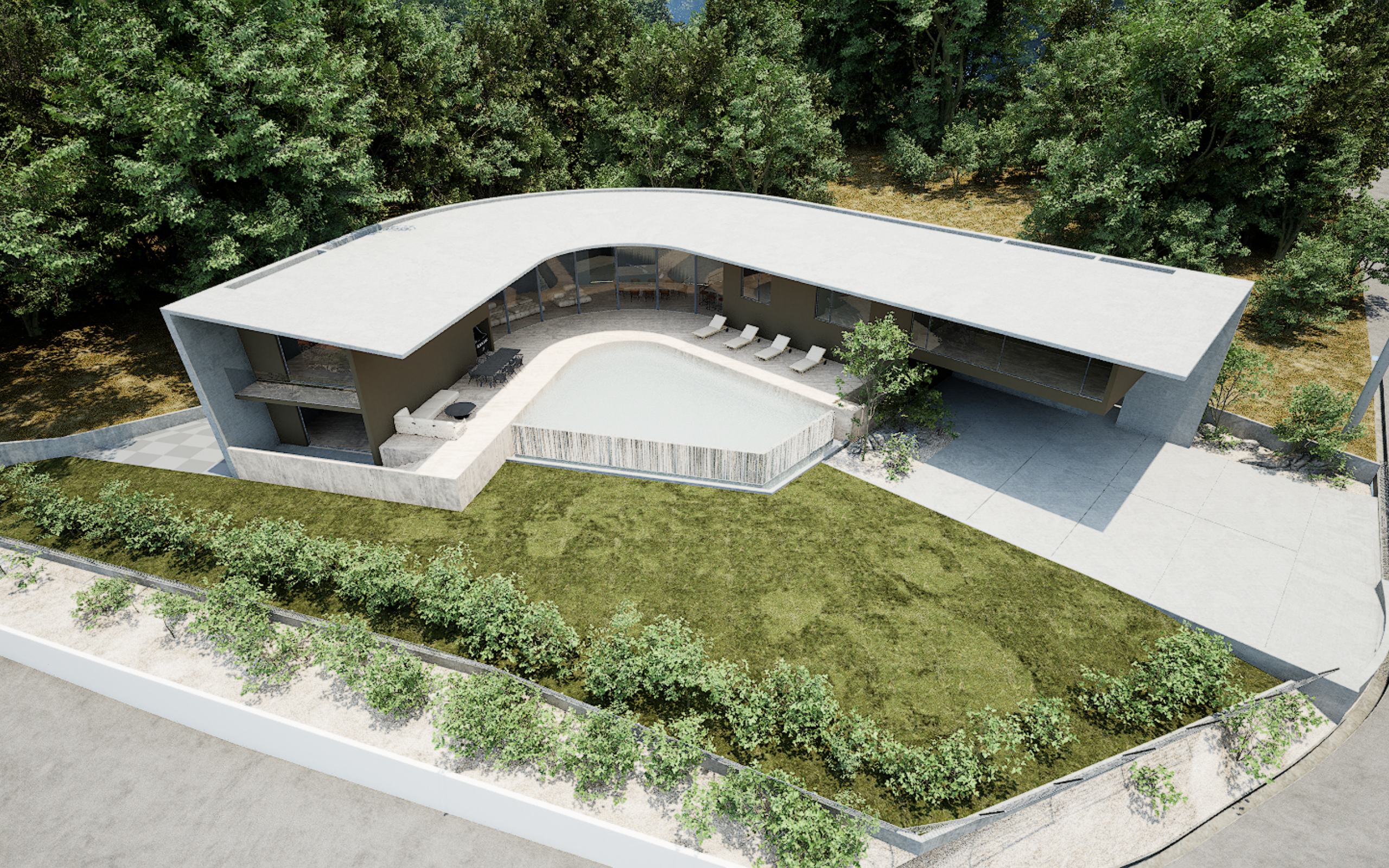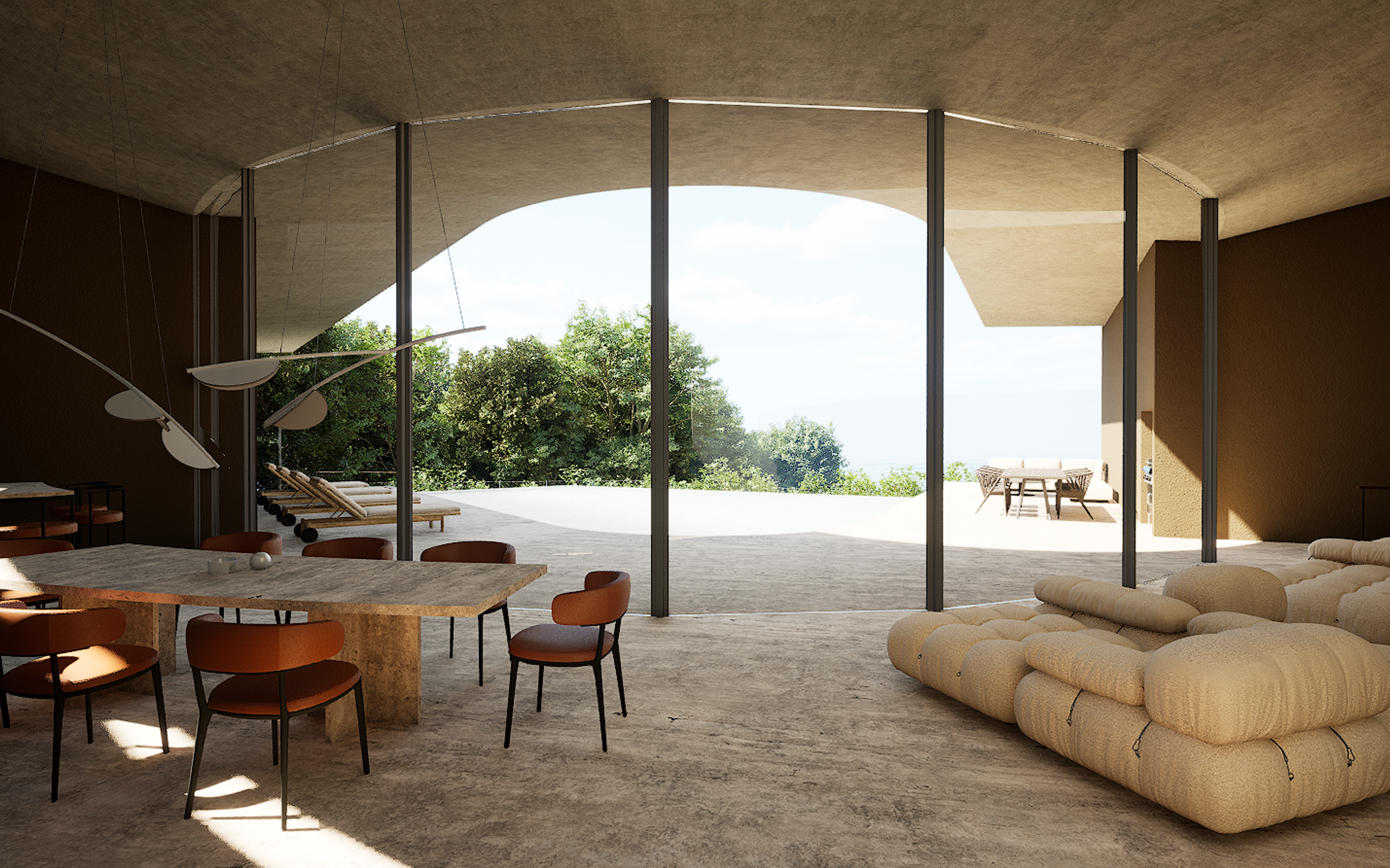 AO villa with gentle sunlight filtering through the trees